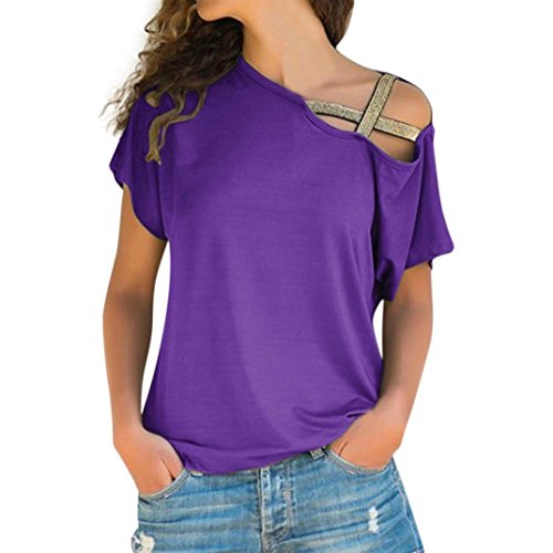Above this is the one of the product images of the NREALY Women Casual Summer Loose Off Shoulder T-Shirt Short Sleeve Tops Blouse Tee(Purple ,Medium). To get other pictures, you can click on the image above.